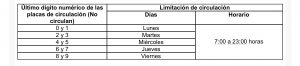 El Secretario General de Gobierno, Jehú Salas Dávila, explicó que el programa Hoy No Circula seguirá vigente, aunque con la modificación de prohibir el uso del automóvil sólo una vez por semana, de manera que la rotación se estableció de la siguiente manera: