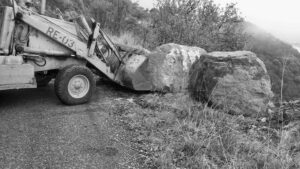Nochistlán, Zac.- Para garantizar la seguridad de los automovilistas, el Gobierno del Estado retira de la carretera que comunica a Nochistlán con Jalpa, a la altura de Tlachichila, rocas de considerable magnitud desprendidas de cerros aledaños como consecuencia de las precipitaciones pluviales de los últimos días.