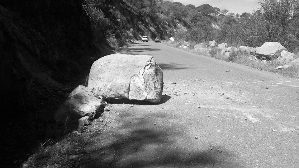 Jorge Luis Pedroza Ochoa, titular de la Secretaría de Obras Públicas (SOP), informó que personal de la Subsecretaría de Comunicaciones realiza trabajos y maniobras para quitar las rocas, a fin de que dicha carretera esté transitable.