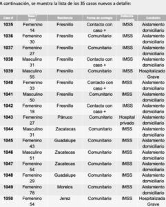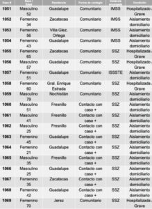 Gilberto Breña Cantú, secretario de Salud, informó que, ambos decesos ocurrieron en el municipio de Fresnillo y corresponden a los pacientes número 826 y 998, de las más de 1 mil personas contagiadas que se han registrado hasta ahora.