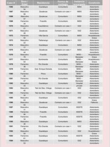 El Secretario de Salud del estado, Gilberto Breña Cantú, informó que los decesos corresponden a pacientes originarios de los municipios de Fresnillo, Guadalupe, Calera, Ojocaliente, Trancoso y Zacatecas.