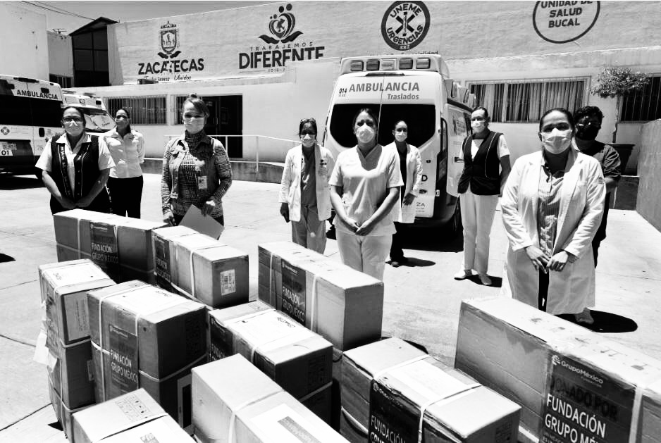 Zacatecas, Zas.- Por gestión del Gobierno del Estado, a través de la Secretaría de Economía, la empresa Grupo México donó 95 mil apoyos médicos para reforzar la atención hospitalaria a pacientes enfermos de COVID-19 en Zacatecas.