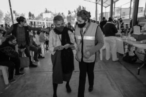 Adem谩s de ello, han convocado a la ciudadan铆a, tocando puertas para informar a la poblaci贸n sobre los horarios y fechas de la aplicaci贸n de la vacuna. En tanto que su cercan铆a con la gente, ha permitido ubicar a las personas adultas mayores en postraci贸n que requieren que la vacuna se les lleve hasta hogar.