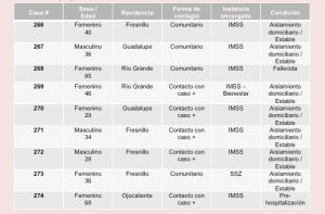 A continuaci贸n, se muestra la lista de los nueve casos a detalle, seg煤n lo informado por Gilberto Bre帽a Cant煤, titular de la Secretar铆a de Salud en la entidad (SSZ):
