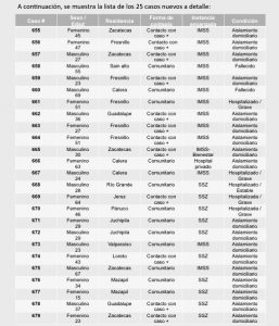 REGISTRA ZACATECAS 25 NUEVOS CONTAGIOS DE ESTE D脥A Y SUMA EN TOTAL 679 CASOS