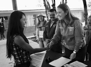Acompañada por el subdelegado de la región Río Grande, Jaime Esquivel Hurtado, el coordinador estatal de las becas para el Bienestar Benito Juárez, Sergio Casas, y la directora de la institución, Luz Margarita Chávez García, la delegada subrayó que la instrucción del Presidente Andrés Manuel López Obrador es trabajar directamente con la gente y no atrás de los escritorios