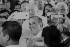 Rodeado de un imponente equipo de seguridad, al parecer del Estado Mayor Presidencial, Pepe Meade llegó pasadas las once de la mañana, saludó y se tomó la selfie con la clase política y con algunos simpatizantes de calle que se amontonaban para abrazar al precandidato.