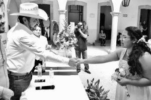 Villanueva, Zac.- En el patio de la presidencia municipal se llevó a cabo el enlace civil de 10 parejas quienes decidieron darle certeza jurídica a su relación.