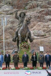 En una fecha histórica para el estado de Zacatecas y del país, el mandatario fue acompañado por las Fuerzas de Seguridad y por la nieta del General Francisco Villa, Guadalupe Villa Guerrero, quien fue galardonada con la Medalla al Mérito de Investigación Histórica de la Revolución Mexicana.