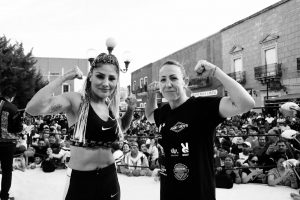 Fresnillo, Zac.- Una tarde llena de adrenalina y pasión se vivió en la Rinconada de la Purificación, con el entrenamiento público de la mexicana Mariana “La Barby” Juárez y la española Eva María Naranjo, quienes demostraron que tienen todo para presentar un espectáculo inolvidable del Campeonato Mundial WBC.