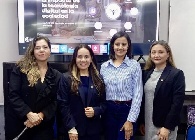 Zacatecas, Zac.- En el marco de la 8ª Semana Nacional de las Ciencias Sociales, la Unidad Académica de Ciencias Sociales (UACS) de la Universidad Autónoma de Zacatecas (UAZ), a través del Cuerpo Académico “Psicología, Educación y Sociedad”, participó activamente con la mesa de análisis titulada “El impacto de la tecnología digital en la sociedad”. La actividad fue encabezada por las docentes investigadoras: Claudia Adriana Calvillo Ríos, líder del CA, Verónica Marcela Vargas Nájera, Andrea Patricia Náñez Juárez y Brisia Leticia Luna Reyes, adscritas a la Unidad Académica de Psicología (UAP).