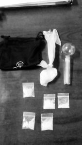 Tras la verificación, encontraron que quien se identificó como Erick N., de 20 años de edad, se encontraba en posesión de cinco bolsitas plásticas tipo ziploc transparentes, conteniendo una sustancia granulada cristalina con las características propias de la droga denominada cristal.