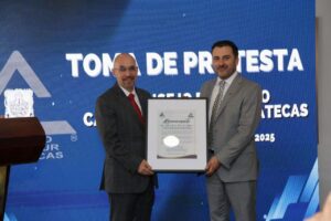 La senadora felicitó al nuevo dirigente de CANACO Zacatecas, Jesús Gabriel López del Bosque, y reconoció su trayectoria y visión para fortalecer al gremio empresarial en un contexto de transformación nacional impulsado por la Cuarta Transformación.