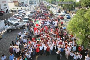Guadalupe, Zacatecas.- Arropado por miles de militantes, simpatizantes y guadalupenses que mostraron su respaldo, Enrique Guadalupe Flores Mendoza realizó su registro ante el Instituto Electoral del Estado de Zacatecas (IEEZ) con la intención de contender por la presidencia municipal de Guadalupe para un nuevo periodo.