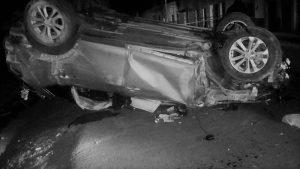 Al interior de la camioneta volcada se auxilió a quien dijo llamarse Roberto N., de profesión profesor y comerciante, quien refirió que fue privado de su libertad momentos antes cuando lo sacaron de su propio domicilio.