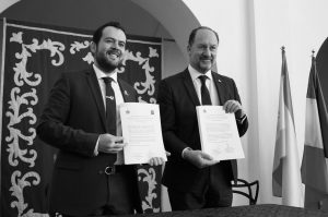 El solemne acto tuvo lugar en el claustro de la Biblioteca Municipal “María Moliner”, donde el alcalde de Orihuela, Emilio Bascuñana Galiano, y el alcalde Zacatecas, Ulises Mejía Haro, firmaron el documento oficial de hermanamiento cuyo proceso comenzó desde septiembre del 2018.