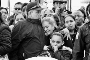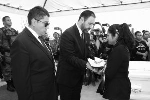 Entre lágrimas, gritos y lamentos familiares y amigos de los elementos caídos despidieron a sus seres queridos, mientras que el Gobernador, Alejandro Tello y el Alcalde, Saúl Monreal, les entregaban las Banderas, mismas que cubrieron su féretro durante el homenaje.