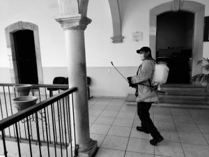 Los elementos de protección civil del municipio al igual que personal de departamento de ecología se han sumado a las tareas de sanitización del jardín principal, mercado municipal, casa del abuelo, presidencia municipal, entro otros espacios donde la población hace mayor afluencia.