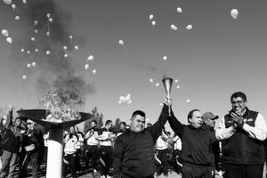 Rafael García Rueda, atleta fresnillense, seis veces campeón nacional y medallista de oro olímpico en levantamiento de pesas, fue el encargado de llevar el fuego olímpico y encender el pebetero.