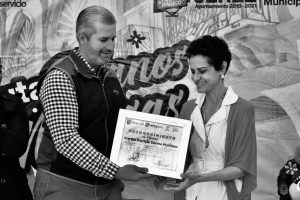 Jerez, Zac.- El Presidente Municipal Antonio Aceves Sánchez, reconoció a Patricia Correa Martínez con la séptima entrega de la Ruta Manos Mágicas, que impulsa y promueve la vocación artesanal de Jerez.