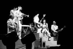 Laferte cantó temas como: El mambo, No te me quites de acá, El Beso, Cumbia para