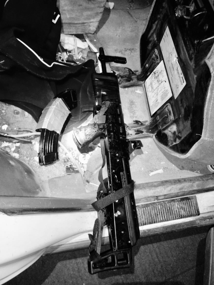 El conductor se identificó como Rodolfo N., de 37 años de edad, a quien no se le encontró ningún objeto ilícito, sin embrago tras una inspección, en el interior del vehículo fue localizada, envuelta en una sudadera, un arma de fuego larga conocida como AK-47 desabastecida, así como dos cargadores abastecidos.