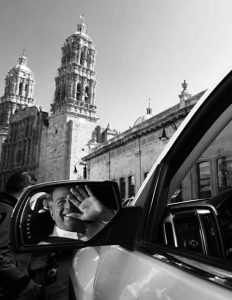 No fue la excepción Zacatecas, donde comenzó con un escuálido desayuno en un hotel céntrico, rodeado de policías estatales, de tránsito y su séquito impresionante de guardias del Estado Mayor Presidencial. Algunos de los asistentes, forzados ante la misma circunstancia, pero renegando la situación. Meade, seco, sonrisa falsa, se sentó, sin forma ni discurso, palabras sueltas sobre la economía. “Tenemos que fortaleces la economía de Zacatecas”, “bla, bla, bla”, nada concreto, el aire acondicionado succionó la débil gramática del exsecretario.