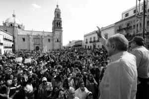 Entre aplausos y muestras de apoyo el representante de MORENA expresó la gratitud y participación del pueblo de Zacatecas en la lucha pacífica por la transformación del país, para sacar al pueblo de la pobreza, inseguridad, marginación e incertidumbre.