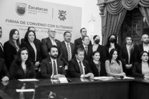 Zacatecas, Zac.- 25 abril de 2022.- En reconocimiento a la clase trabajadora por su aportación diaria en favor de la entidad, el Gobernador David Monreal Ávila firmó el convenio entre el Gobierno de Zacatecas y el Sindicato Único de Trabajadores al Servicio del Estado Municipios y Organismos Paraestatales (Sutsemop), mediante el cual otorga al personal sindicalizado el aumento salarial 2022 con el que se beneficiará particularmente a los que menos ganan.