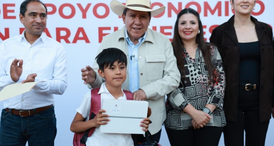 “Vengo a refrendar mi compromiso con la educación y con las personas de Guadalupe y de todo Zacatecas; con este programa, ayudamos de manera importante en la economía de las familias, expresó el Gobernador David Monreal en compañía de la Secretaria de Desarrollo Social, Bennelly Hernández Ruedas, que opera este programa; de la Secretaria de Educación, Gabriela Pinedo Morales.