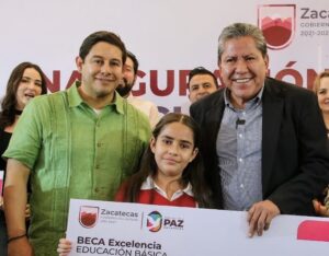 Tras la inauguración de la rehabilitación del acceso a la comunidad Francisco I. Madero, el Gobernador David Monreal Ávila también entregó Becas de Educación para el Bienestar a estudiantes destacados, en compañía de María del Carmen Salinas Flores, secretaria de Educación de Zacatecas.