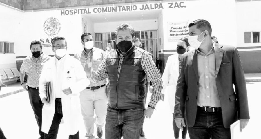 Jalpa, Zac., a 03 de mayo del 2022.- El Gobernador David Monreal Ávila realizó un recorrido por el hospital comunitario de Jalpa, donde informó al personal médico, de enfermería y demás trabajadores del lugar, que el Gobierno del Estado gestionará la inversión de recursos para mejorar el servicio que se brinda a las y los zacatecanos de esta región de la entidad, en tanto se concreta el convenio con la federación para la universalización de la salud.