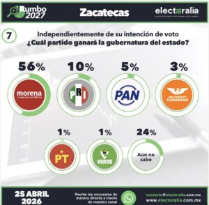 De acuerdo con la más reciente encuesta de la firma Electoralia, titulada “Rumbo 2027”, la legisladora federal no solo mantiene su ventaja, sino que acelera su posicionamiento.