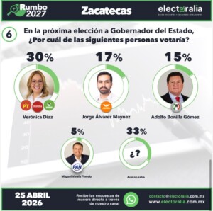 Con un 30% de preferencia electoral, supera ampliamente a figuras como el emecista Jorge Álvarez Máynez (17%) y al priista Fito Bonilla (15%), quien aún no define su rumbo partidista y se mantiene estancado en un sector reducido.