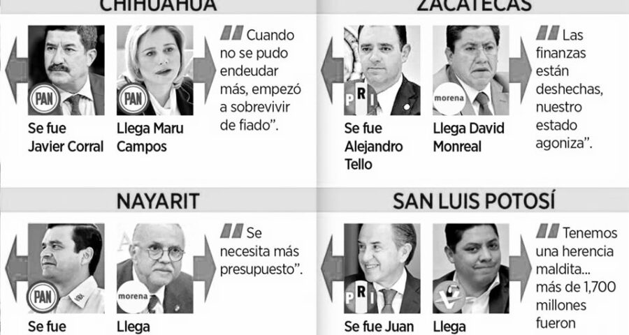No fue sólo Zacatecas, los nuevos gobiernos estatales de Chihuahua, Sonora, Campeche, Nayarit y San Luis Potosí, iniciaron sus administraciones con exorbitantes deudas y sin recursos para pagar nóminas de trabajadores y otras prestaciones.
